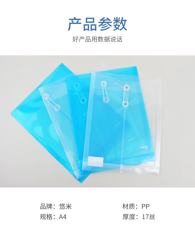悠米(UMI) 透明缠扣文件袋 竖式 A4 W08003C 透明