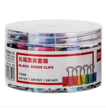 得力 8521 长尾票夹套装(混)(82只/筒) (单位:筒)