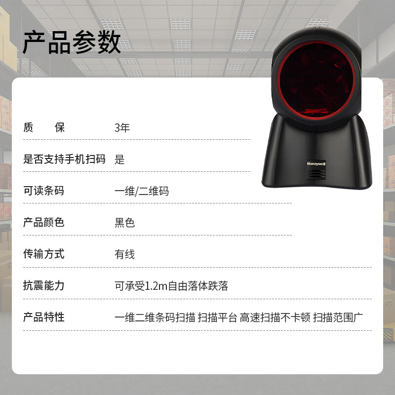 霍尼韦尔"大眼“扫码枪7120-2D黑 二维 黑色 USB可扫屏幕