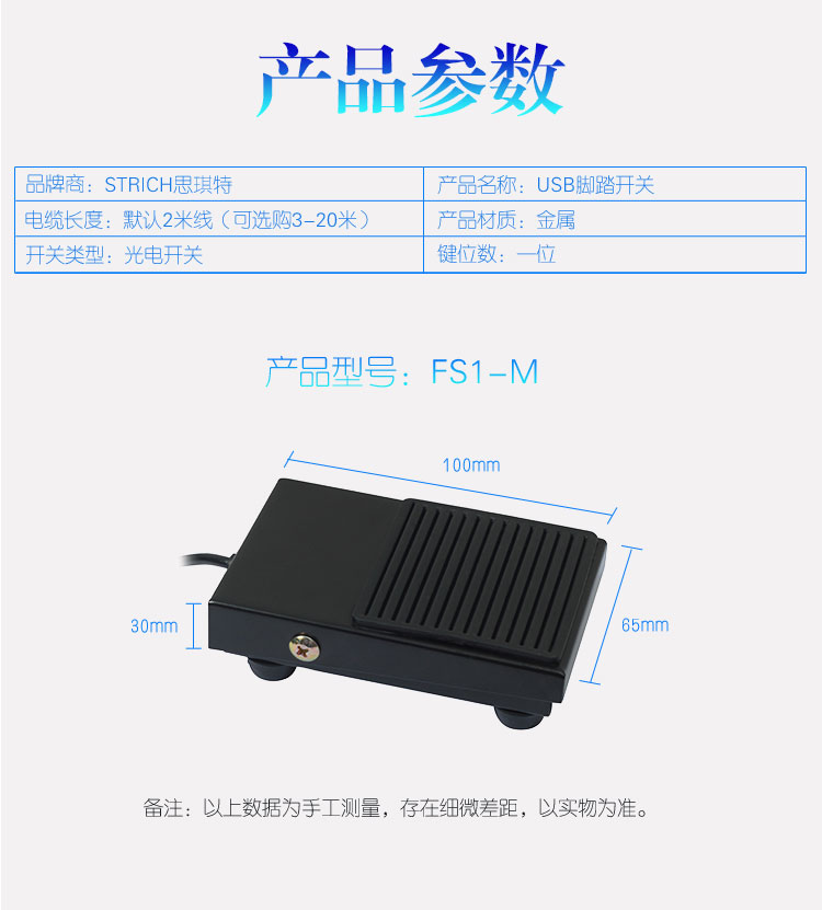 思琪特USB脚踏开关可自定义采图快捷键脚踩板 2米黑色线