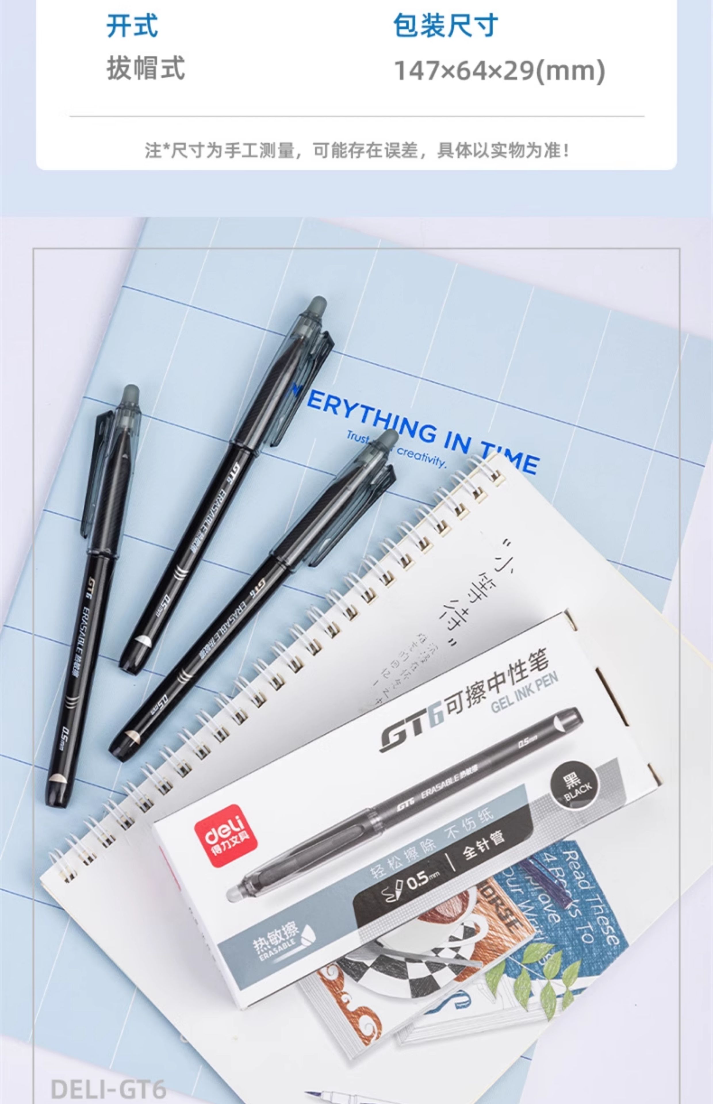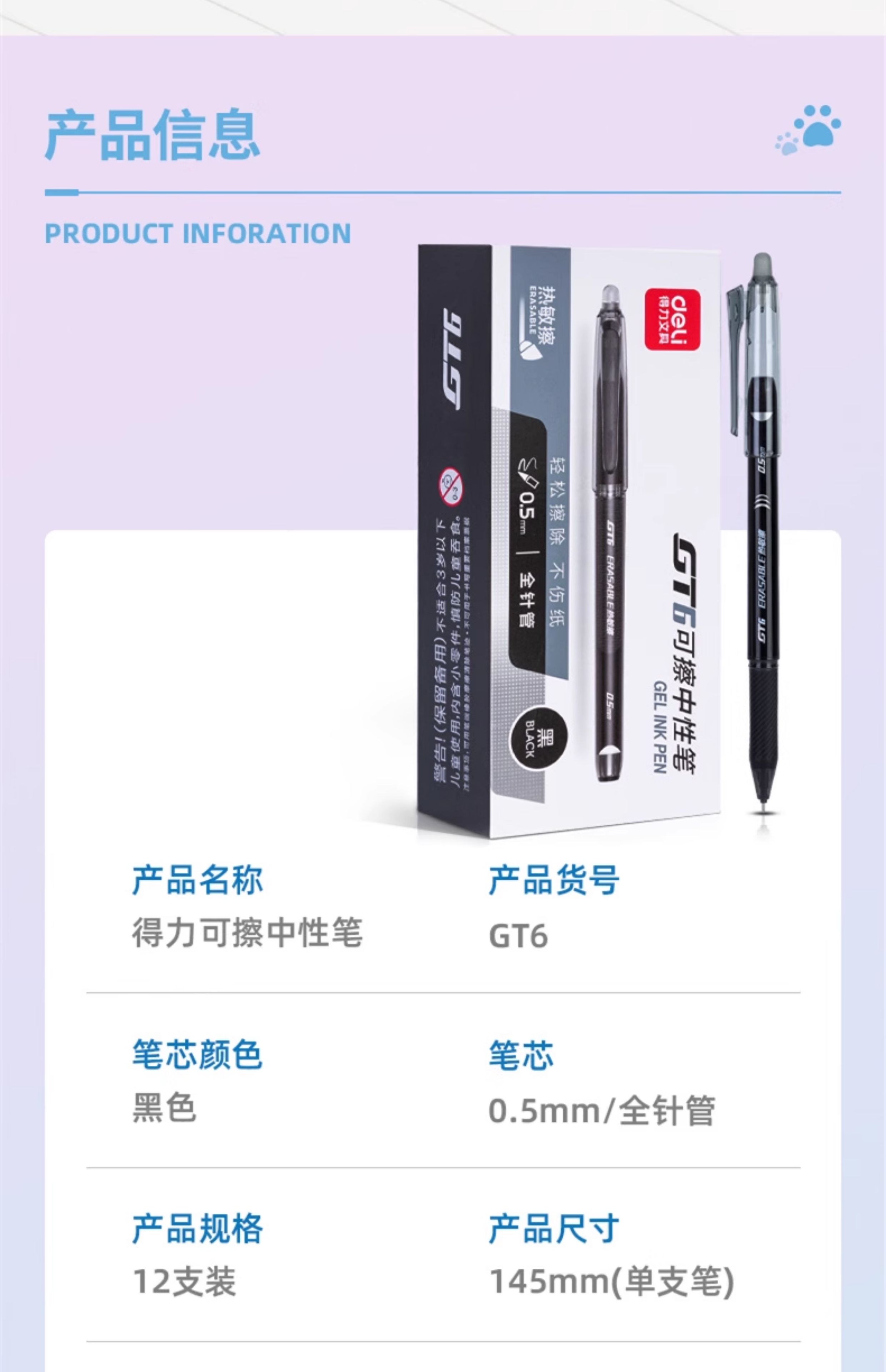 得力可擦中性笔GT6 黑色0.5mm