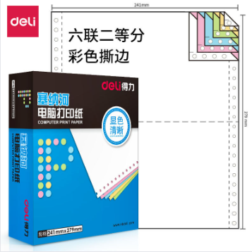 得力塞纳河N241-6电脑打印纸(1/2CS彩色撕边)(盒)