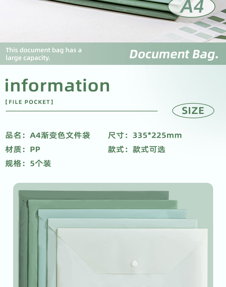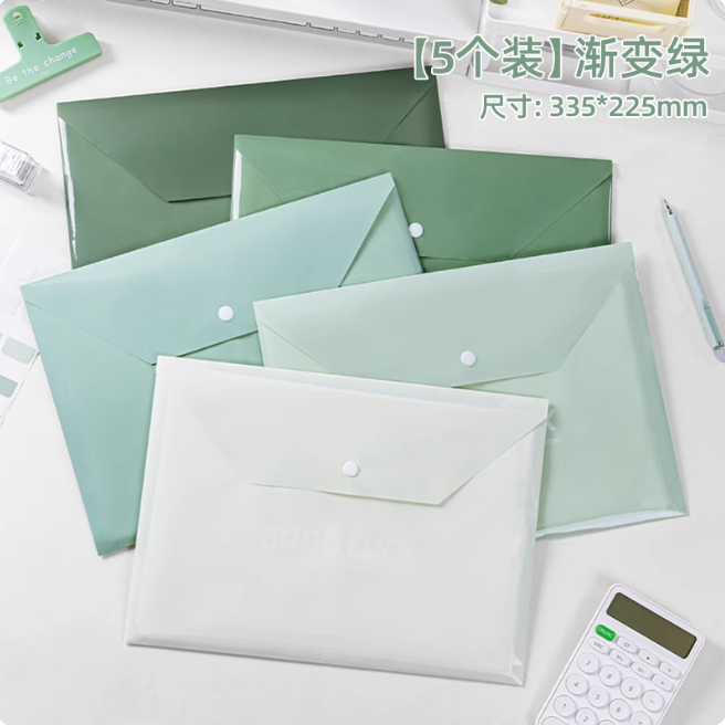 三年二班 a4文件袋渐变透明塑料纽扣袋【5个/包】