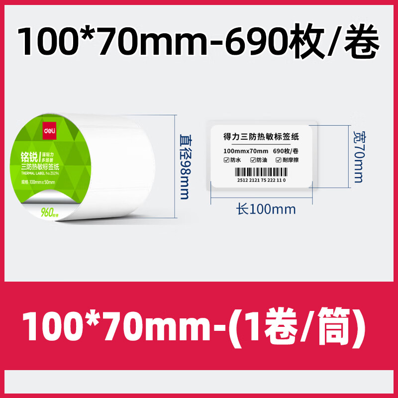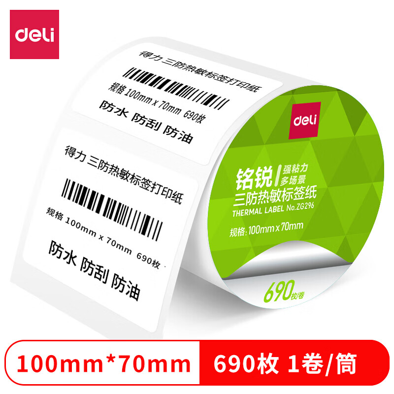 DELI得力铭锐三防热敏标签纸 ZG296铭锐100*70mm-690枚(1卷)